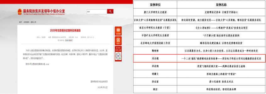 (通讯员 同榛)2021年1月12日,国务院扶贫办“志愿者扶贫案例50佳”评选结束,公司必威西汉姆联刘志镜教授的“一个二次‘插队’教授精准扶贫的故事——必威西汉姆联刘志镜教授扶贫纪实”案例获评。