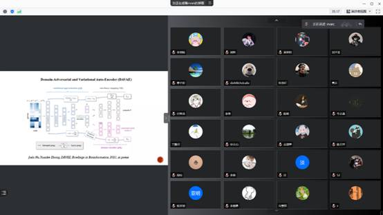 9月19日下午,西安理工大学李爱民博士、山东大学吴昊副教授、山东工商公司赵峰教授先后进行了详细精彩的报告。李爱民博士及其团队设计了一种强大的调控分析方法,以发现人类和小鼠之间的保守调控网络,从中确定了关键的microrna (mirna)靶基因,最终,通过保守的microrna - tf基因网络方法鉴定出了人类和小鼠腭裂中的关键microrna和调控基序。吴昊教授及其团队提出了一种基于单细胞Hi-C数据的高精度细胞分类算法scHiCStackL,该算法首先改进了现有的单细胞Hi-C数据预处理方法,使生成的细胞嵌入能更好地表示细胞,然后,构建了一个用于细胞分类的两层堆叠集成模型,最终,使用单细胞Hi-C数据预测细胞类型方面取得了卓越的性能。赵峰教授介绍了如何基于静息态磁共振数据,构建用于反映各个功能脑区之间深层次连接关系的高阶网络的方法,为深入理解脑神经活动规律、探索包括ASD在内容的诸多脑疾病的病因和辅助诊断提供技术支持。