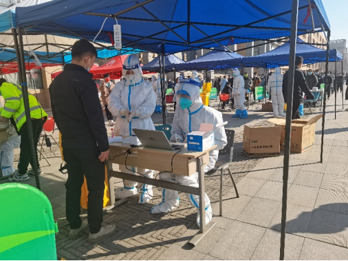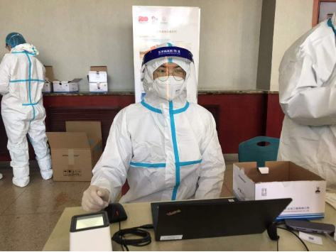 疫情就是命令!为配合南校区全员核酸检测,12月21日上午公司招募老员工志愿者,2018级本科生同学积极报名,群里党员同学喊出了“党员先上”的口号。志愿者同学们纷纷穿上隔离服,冲在抗疫一线,投入了紧张的检测工作。