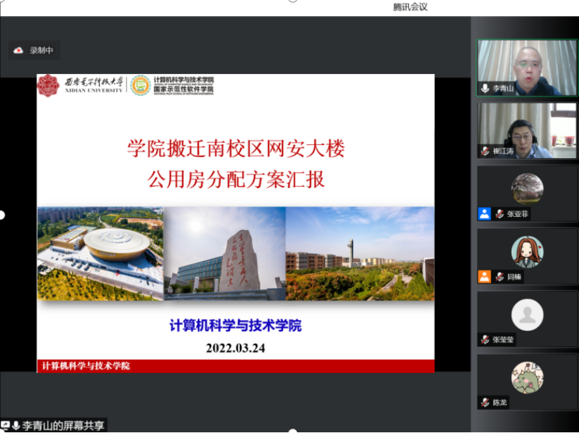 公司党委书记李青山汇报公司南迁网安大楼公用房分配方案