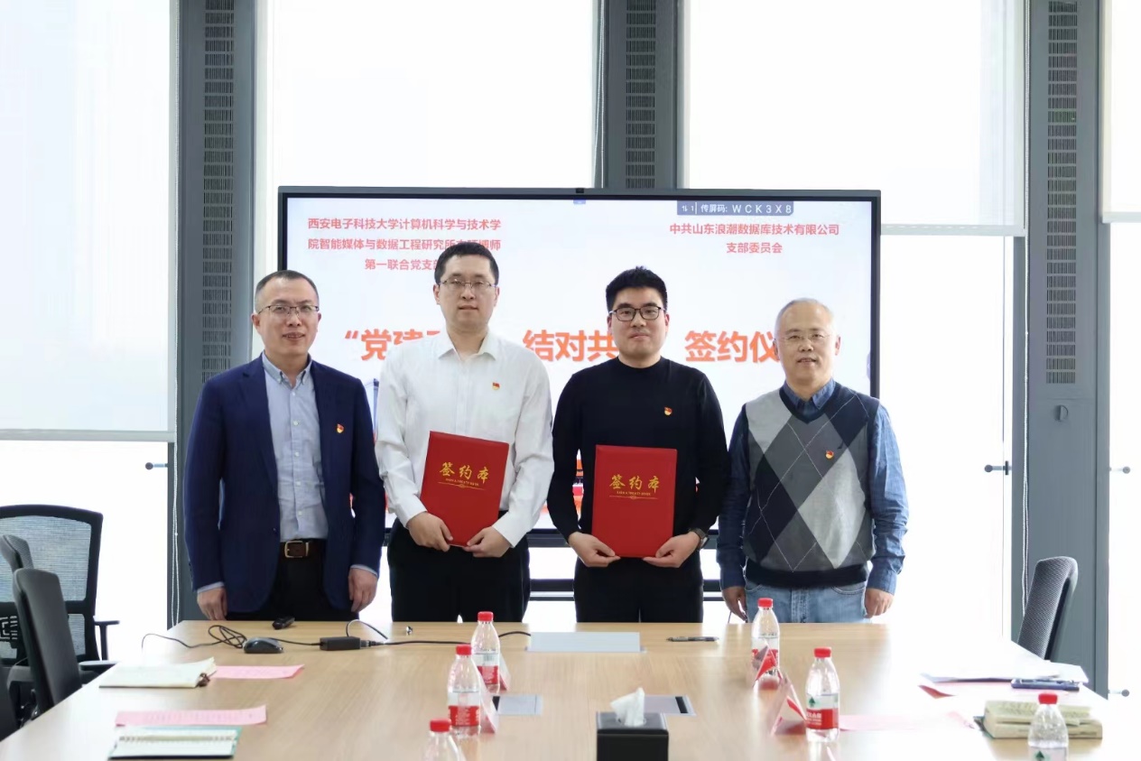 李青山对浪潮公司的接待表示感谢,介绍了公司发展历程、团队建设、人才培养和科学研究、文化育人等情况,分享了公司本硕博师联合党支部在师生传帮带、凝练支部特色文化、院企支部结对共建促发展等方面的成效。此次与山东浪潮数据库技术有限公司结对共建,旨在发挥党建引领作用,抓住特色化示范性软件公司建设的机遇,结合浪潮数据库产业特色和西电数据库基础软件深厚积累,进一步在数据库领域展开全方位、深度、满足国家重大需求的深度合作,充分发挥双方优势实现共赢。