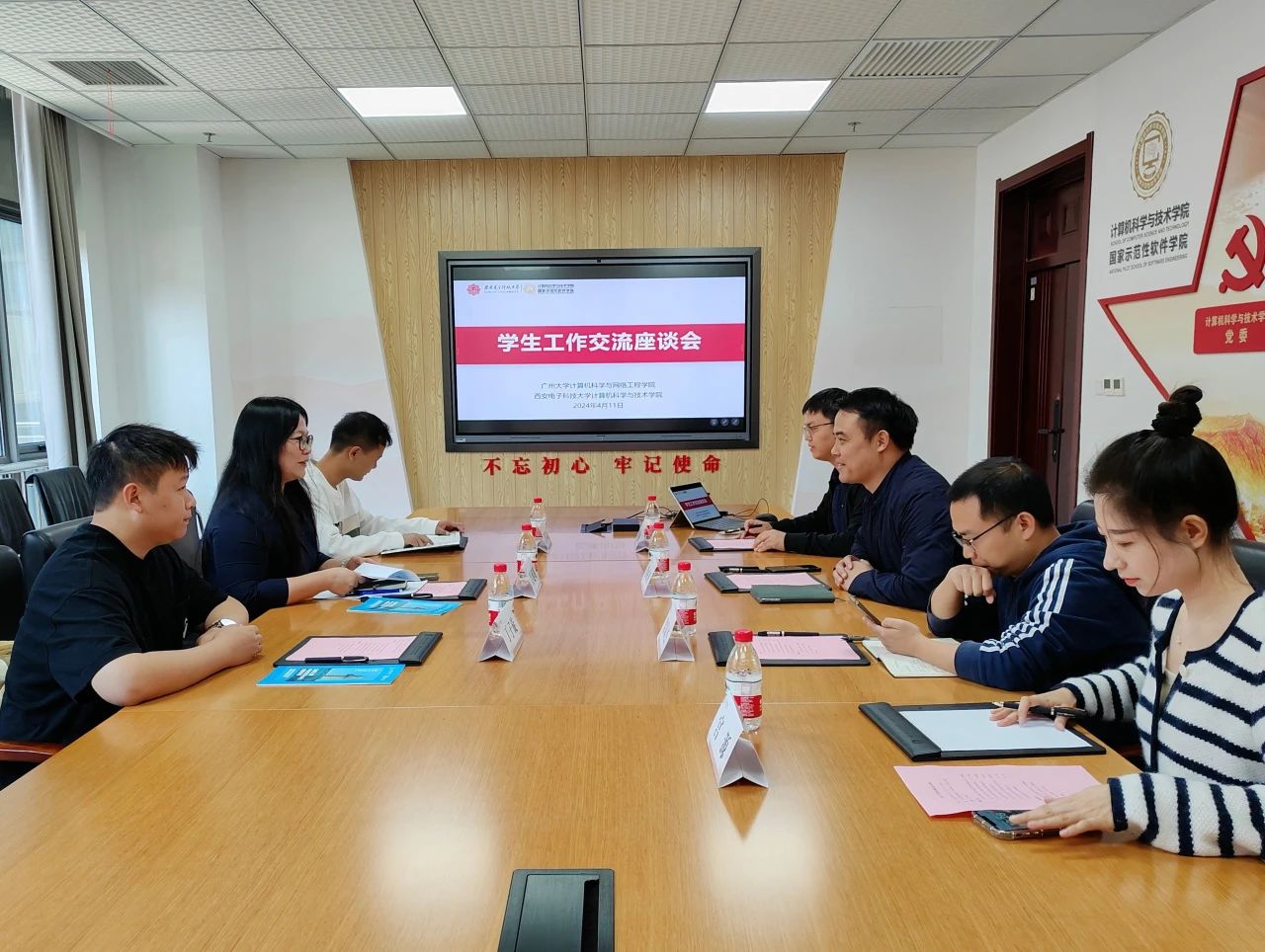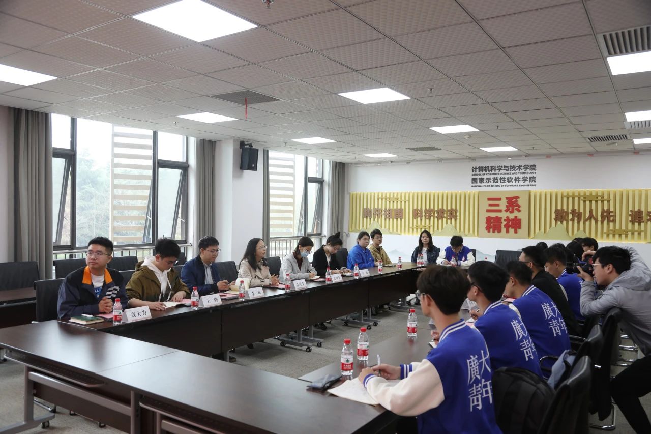 4月11日上午,员工工作交流座谈会在南校区网安大楼A1-222会议室召开。西电计算机科学与技术公司党委副书记黄成龙、辅导员党支部书记梁双杰、团委书记李栋、辅导员宫源以及广州大学计算机科学与网络工程公司党委副书记吕延明、辅导员肖章益、丁子旋参会。