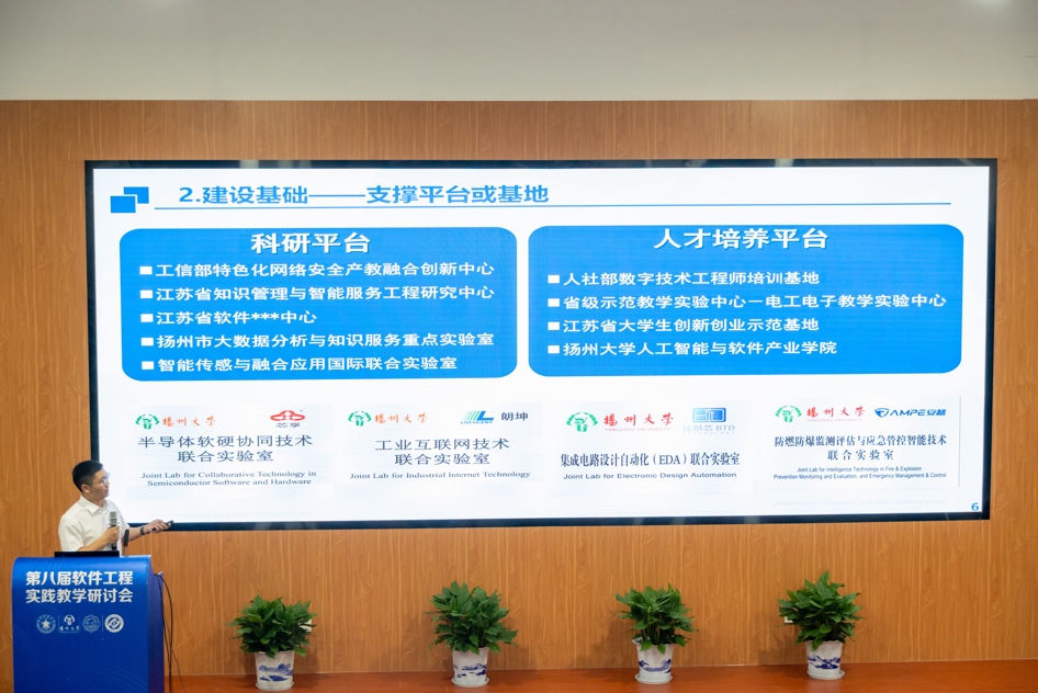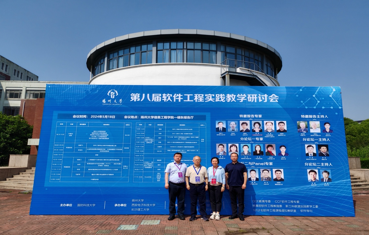 在软件定义一切和大模型时代,特色化示范性软件公司建设、软件工程专业建设、课程教学和人才培养面临着新的机遇和挑战,为了更好的促进软件工程公司产品方法和实践教学成果的交流和分享,推动软件工程专业建设和教学改革,提升软件人才的培养质量。2024年5月18日,由国防科技大学主办,扬州大学、必威西汉姆联和长沙理工大学联合承办的第八届软件工程实践教学研讨会在扬州大学信息工程公司(人工智能公司)东报告厅举行。CCF计算机教育专委会副主任、国防科技大学毛新军教授,扬州大学信息工程公司(人工智能公司)经理孙小兵教授,必威西汉姆联计算机科学与技术公司党委书记、软件工程学科负责人李青山教授担任会议联合主席。