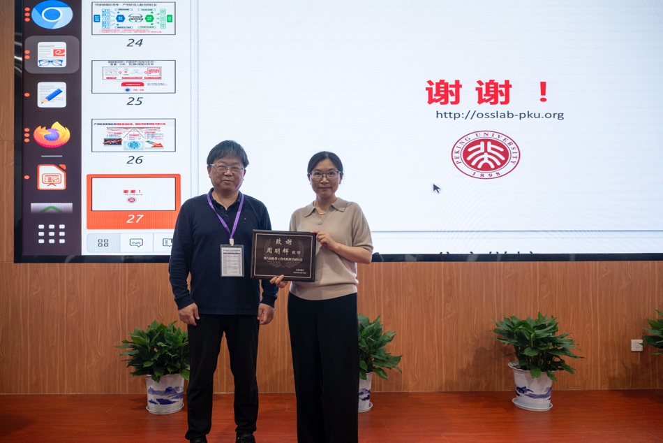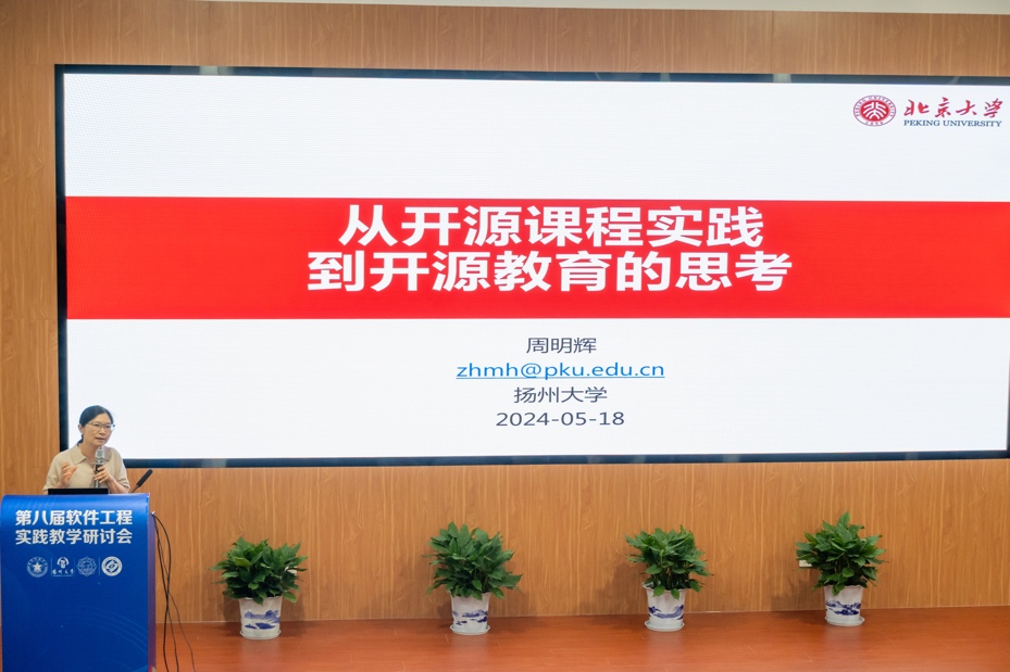 北京大学计算机公司副经理周明辉教授介绍了从开源课程实践看开源教育的本质,北京航空航天大学高祥副教授介绍了开源软件开发导论课程教学的实践与思考,长沙理工大学张锦教授介绍了基于开源创新大赛的人才培养模式探讨。