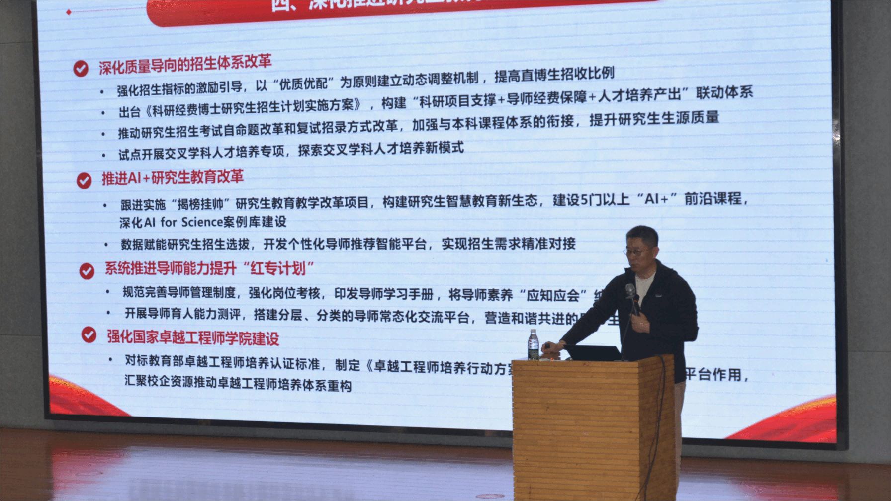 公司党委书记李青山传达了公司对公司巡察整改、师德师风、教风作风、稳定安全、保密等工作要求。李青山通报了师德师风和安全保密等方面的典型案例,分析了广大教师在日常教学科研工作中可能存在的风险隐患,深入剖析了风险点和形成原因,提出针对性建议,希望广大教师警钟长鸣、引以为戒。他对下半年工作提出要求,一是严格落实公司巡察整改要求,坚持问题导向原则,实行“台账式管理”,确保整改成果固化落地,实现以整改促发展。二是持之以恒加强师德师风建设,以“立德树人”为根本遵循,“典型引领与问题警示”双向发力,为教育高质量发展提供坚实的人才保障。三是常抓不懈教风作风,将教风作风建设融入教学科研、管理服务、制度规范的全过程,转化为教师与管理人员的自觉行动。四是筑牢安全意识、守牢安全底线,将风险防范意识贯穿到教学科研工作全过程。