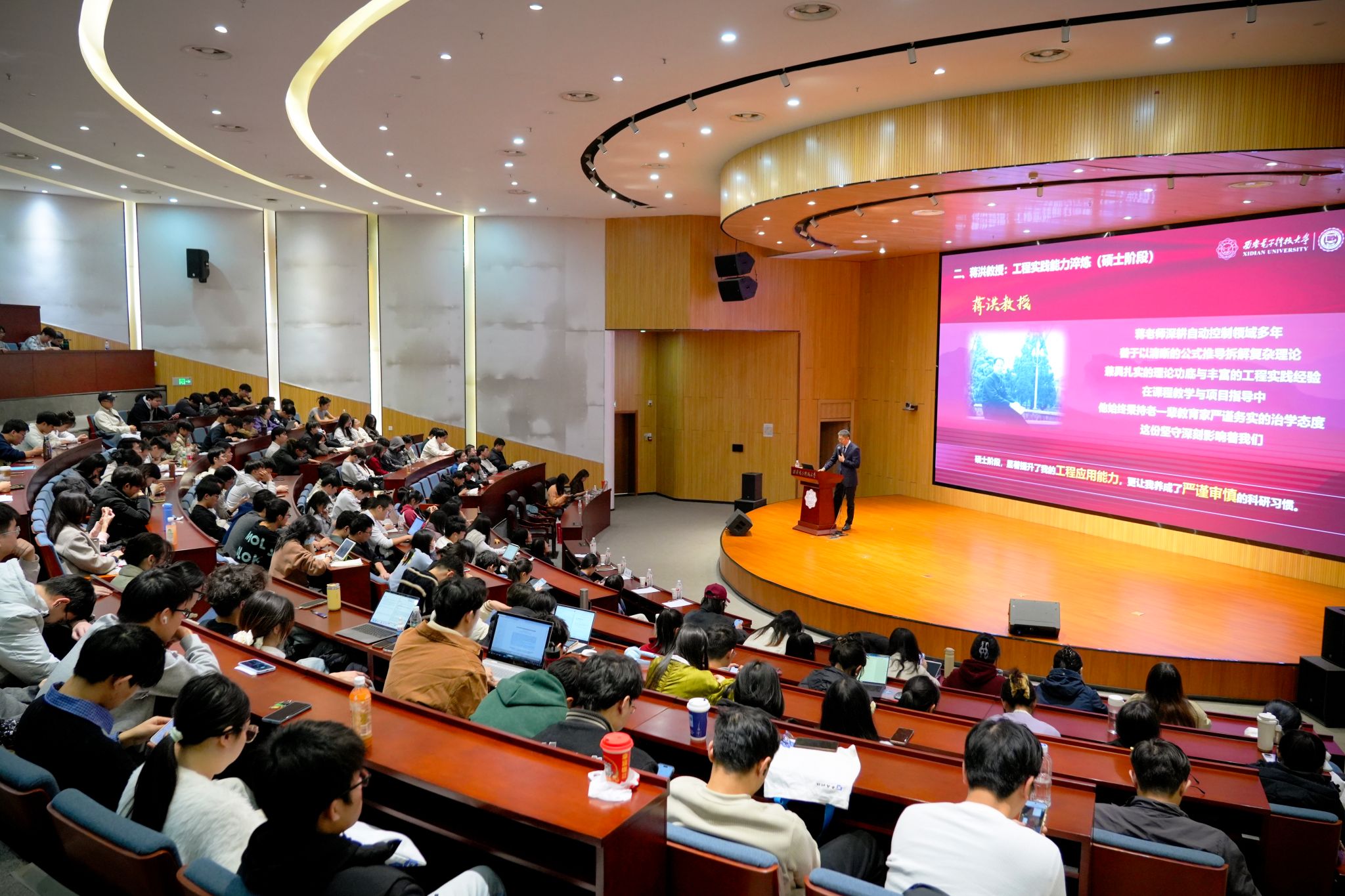 结合自身30余年学术与实践经历,崔江涛教授对研究生提出殷切期许,他希望研究生能够多向老师请教,扎实学好专业知识,在实践中提升工程能力,用务实的态度破解科研难题,并在团队合作中推动项目实现。他谈到,科技自立自强是国家强盛之基、安全之要,作为科技创新的重要力量,研究生的学术水平和攻关能力,直接关系到国家科研能走多远、攀多高。他叮嘱同学们要将个人奋斗融入强国复兴的伟大事业中,以科研报国的初心、青春拼搏的担当,在建设科技强国的路上不断攀登。