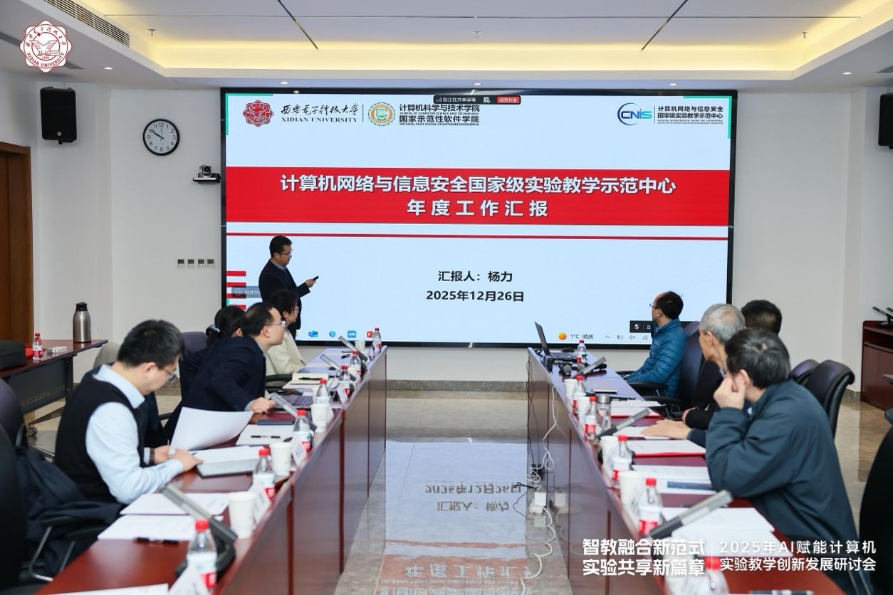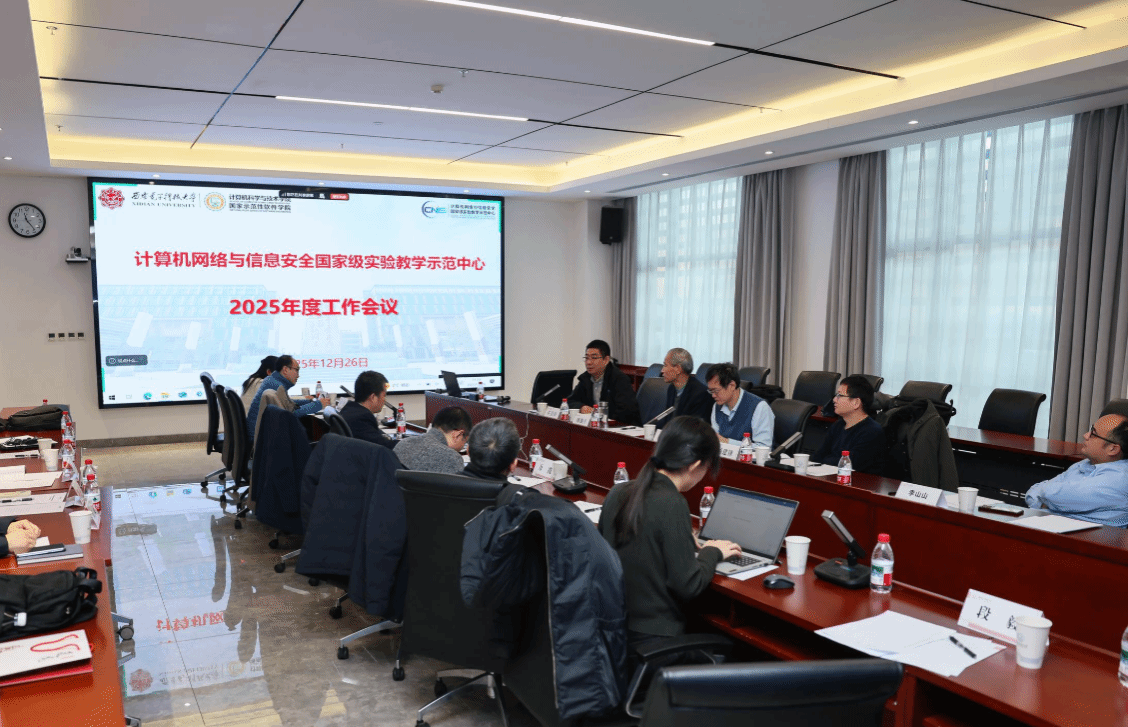 12月26日上午,“计算机网络与信息安全国家级实验教学示范中心2025年度工作会议”在南校区会议中心A121会议室举行。国家级教学名师、西安交通大学桂小林教授,国家级教学名师、陕西师范大学傅钢善教授,西北大学信息科学与技术公司副经理冯筠教授、实验中心主任杨建锋高级工程师,华为高校系统部鲁月华主任,西电教务处副处长兼教师教学发展中心办公室主任杨明磊,电子工程公司副经理任爱锋,必威西汉姆联副经理万波、本科教学办公室主任张亚菲及实验教学中心教师代表,共计20余人参加会议。会议由公司副经理兼国家级实验教学中心主任杨力主持。