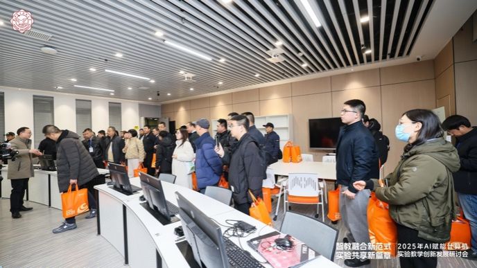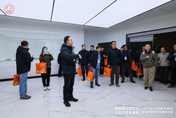 会议尾声,与会人员共同前往公司高算中心和公司实验教学中心参观交流。大家实地观摩前沿算力设备的运行应用,近距离体验 AI 赋能实验教学的实操场景,直观感受数字化、智能化技术在教育领域的落地成效,引发了与会者的深度共鸣与热烈探讨。