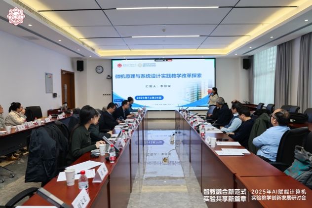 接下来,杨力代表实验中心作年度工作汇报。他从年度建设基本情况、工作进展、建设成效与未来规划等四个方面,全面展示了中心在服务全校大规模实验教学、建设信创与国产化实训平台、深化校企合作、探索AI赋能实验教学以及推动实验资源开放共享等方面取得的成果,介绍了在新的形势和机遇下实践中心对来的思考和规划。中心骨干教师刘进、李欣荣则分别就“人工智能赋能计算机网络实践教学改革”与“微机原理与系统设计实践教学改革”进行了专题汇报,分享了如何在课程中利用AI技术构建智能辅导、个性化学习路径及虚实融合实验环境的具体实践与思考。