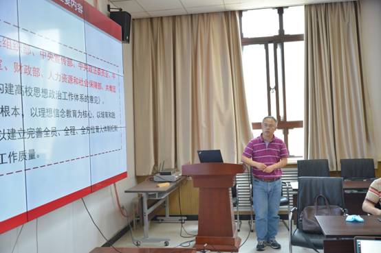 李青山领学教育部等八部门印发的《关于加快构建高校思想政治工作体系的意见》,带领与会成员集体学习了理论武装体系、学科教学体系、日常教育体系、管理服务体系、安全稳定体系、队伍建设体系和评估督导体系等七大体系的具体内容。李青山结合公司三全育人综合改革试点、联合支部党建育人作用发挥、课程思政建设等实际谈到,全院教师一是要统一认识,深入领会文件精神,把握《意见》精神实质;二是要积极谋划,认真落实。在支部活动、专业课程等方面强化对员工的政治引领和价值引导,不断加强党建带团建、公司文化培育、辅导员队伍建设的力度,将各项要求落到实处。李青山还针对“教育部思政司负责人就《意见》答记者问”进行了逐条说明。