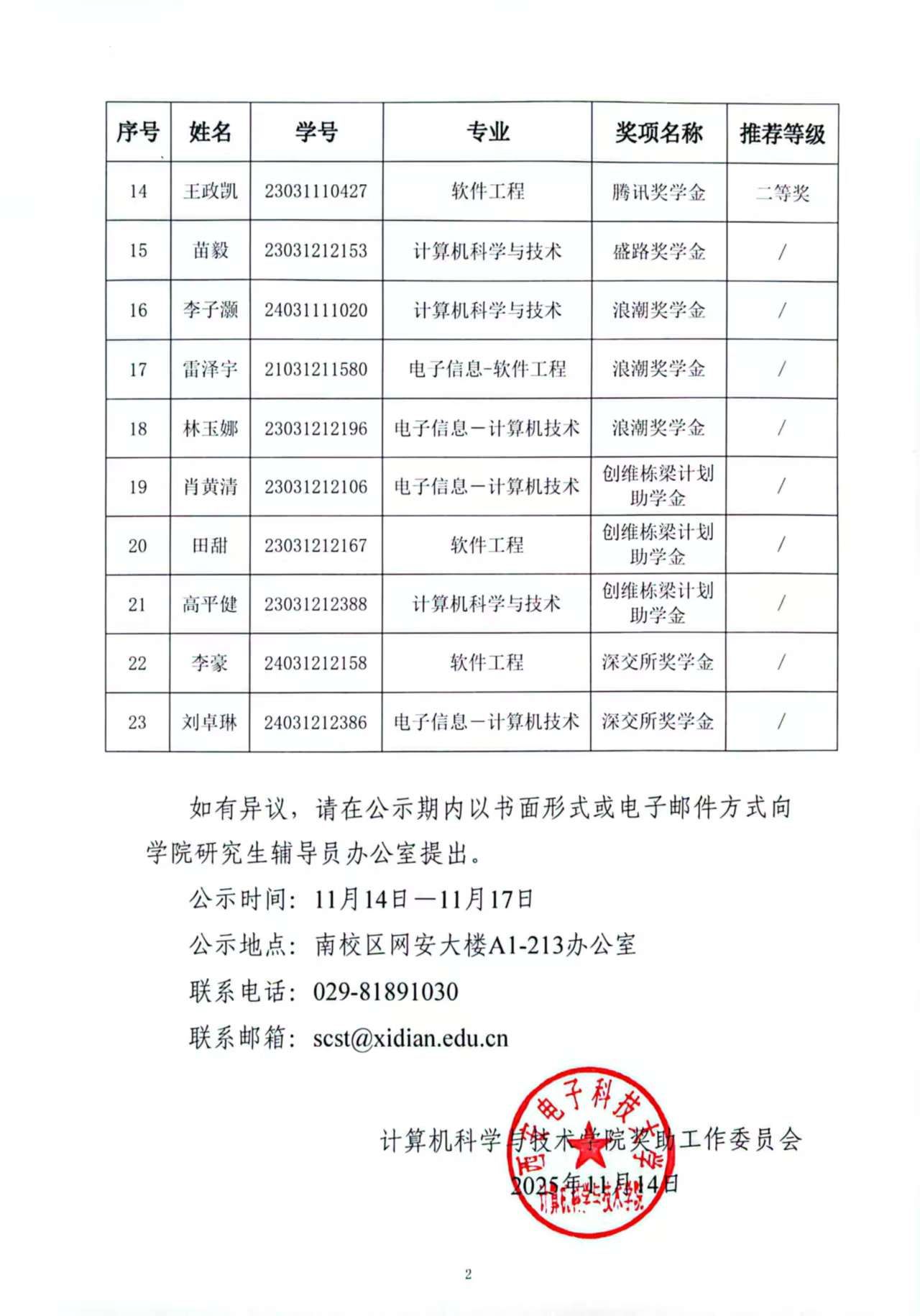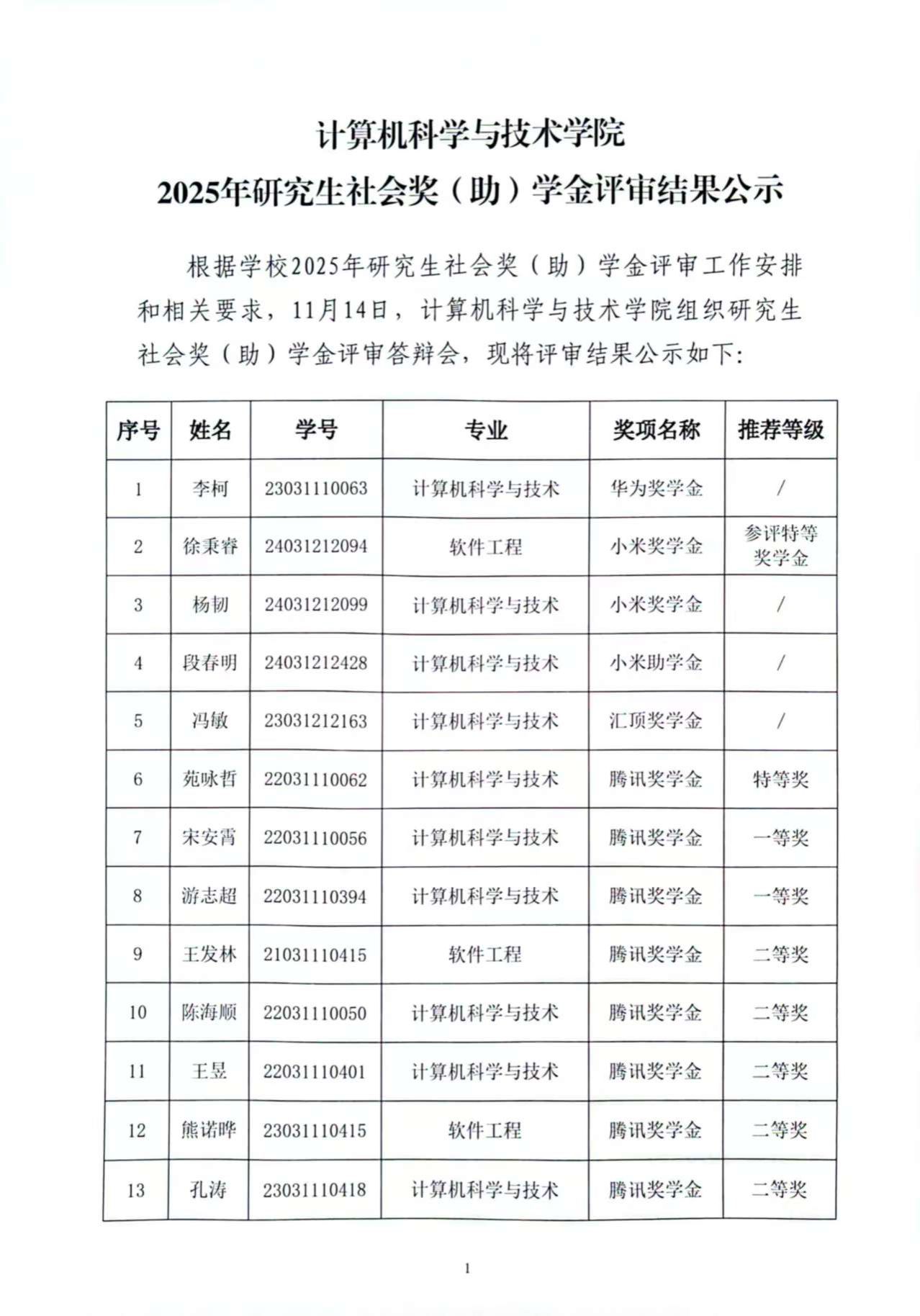 2025年研究生社会奖(助)学金评审结果公示