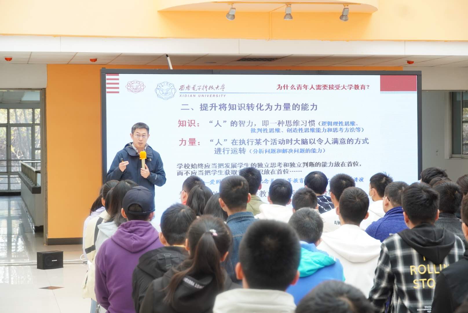 他引用了德国著名哲学家卡尔·雅思贝尔斯的一句话,“教育的过程首先是一个精神成长的过程。”,并对现代大学的职能特性与发展定位进行阐述,他勉励同学们要在大学开放包容的环境中,通过课堂内外的各种实践与尝试,真正历练成为有理想、有责任、有担当的正式社会公民。