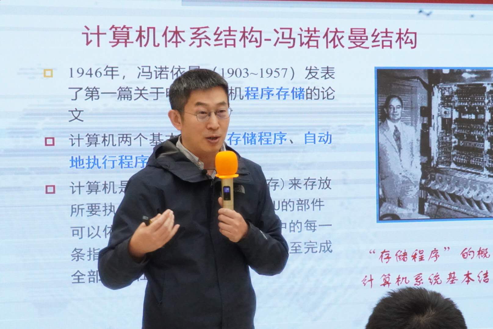围绕计算机发展历程,崔经理从图灵机和冯·诺依曼体系讲起,结合自身经历告诉大家如何从事科学研究,如何感受科研魅力。他列举了“吊舱软硬件控制系统”和“分布式区块链数据库”两个研发实例,让同学们更为直观地了解操作系统、内存管理、编译优化、I/O、驱动程序、文件与数据库系统等相关概念。一个个研究热点让大家清晰认识到计算机专业的发展方向,同时也深刻领会到科研工作者严谨治学的态度以及科研攻关道路的艰难与收获。