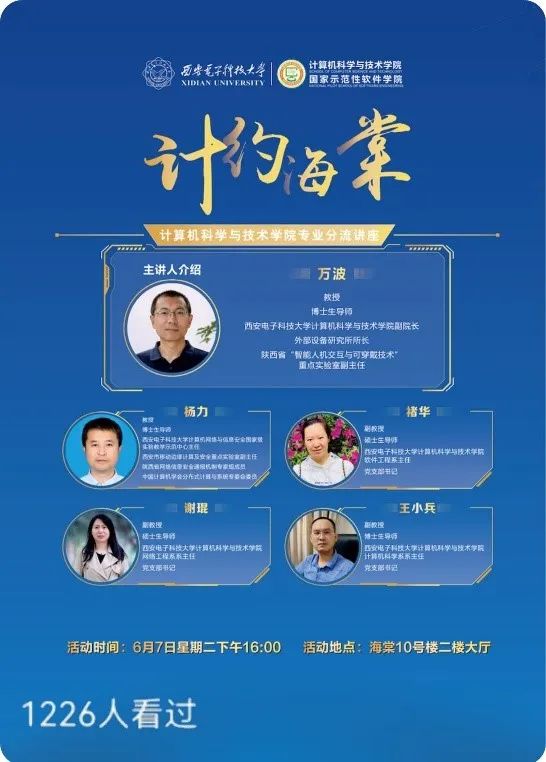 本次专业分流宣讲活动同时在“西电计科学工”视频号直播,直播期间共计1061名观众在线观看,一百余名观众观看了直播回放,线上线下反响热烈。
