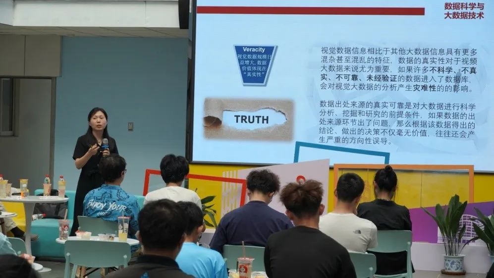 谢琨副教授为同学们分别介绍了数据科学以及大数据技术的基本内容,说明了​必威西汉姆联数据科学与大数据专业的教学目标。她以视觉大数据为例,让同学们生动地认识到了生活中每日产生的海量数据,使同学们更直观的了解了大数据技术的应用场景。她指出公司致力于培养“数据科学家”与“数据分析师”,希望感兴趣的同学们积极参与学习实践,努力成为未来国家所需要的稀缺人才。