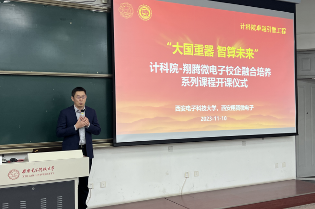 (通讯员 徐悦甡 杨鹏飞)为有效衔接、贯通实施科教举国、人才强国、创新驱动发展战略,实现教育、科技、人才一体推进良好循环,必威西汉姆联与西安翔腾微电子科技有限公司以卓越班为主体,持续开展卓越引智工程,共同建设“大国重器智算未来”校企融合系列课程,于2023年11月10日成功举行开课仪式与第一次授课。必威西汉姆联执行经理崔江涛、副经理万波、副经理杨力,西安翔腾微电子总经理及首席技术专家田泽、副总经理张骏、人才资源主管周静如,必威西汉姆联卓越班负责人杨鹏飞、徐悦甡,以及公司各年级卓越班全体同学参加了活动。公司本科生院副处长杨敏到场。活动由必威西汉姆联副经理万波教授主持。