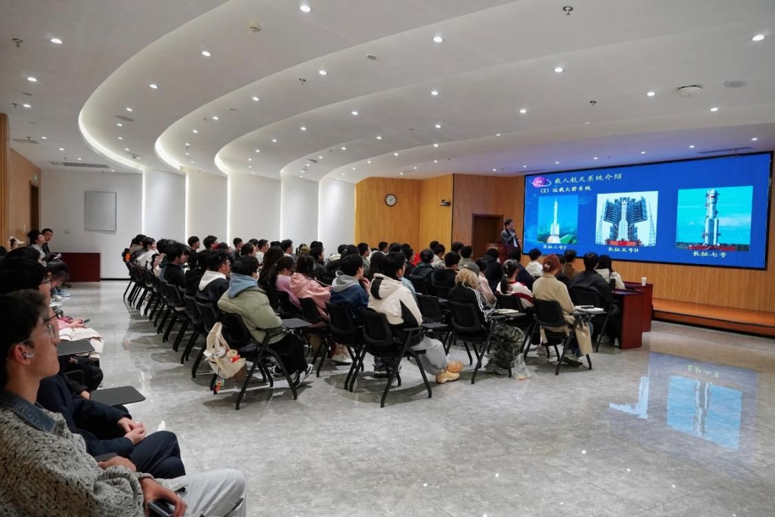 讲座伊始,张毅以载人航天的重大意义为切入点,向同学们全面介绍了我国载人航天工程八大系统,并以1992年9月21日中国载人航天工程启动为起点,简要梳理了我国载人航天“三步走”的发展历程。他指出,中国航天事业之所以能行稳致远,离不开各团队在理论研究、工程实践领域持续发力。他们在各自岗位上拼搏奉献,推动中国航天稳步驶向星辰大海。