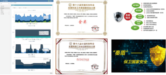 “秦盾”云加密数据库系统荣获第十八届中国科协年会全国科技工作者创新创业大赛金奖(16/1800+)/最佳商业投资价值奖(2/1800+)、中国发明协会金奖等;作为教育部六个重点项目之一,参加了军民融合成果展,在新华社的报道中被认为在军民融合领域拥有广阔应用前景,已经应用于中国建设银行安全云、济南市政务云平台等;应邀参加了CCTV2 的《创业英雄汇》,项目负责人作为高校唯一获奖人入选 2018 CCTV 中国十大创业榜样。