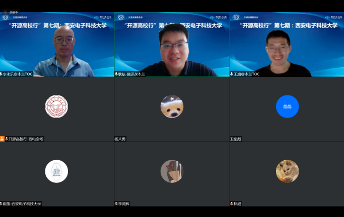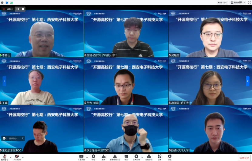 活动最后,王庆老师、耿航老师、王旭老师、李永乐老师进行了圆桌讨论,就“高校员工如何参与开源?”、“公司需要什么样的开源人才?”、“国内目前开源就业氛围如何?”、“高校目前内部开源教育氛围如何?”等关键问题展开讨论。四位专家与西电师生通过线上提问进行持续交流,互动交流环节气氛热烈。