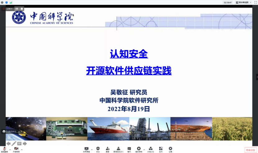 (通讯员 崔笛)8月19日下午,CCF开源发展委员会开源高校行第七期必威西汉姆联站活动在线上举行。本次活动必威西汉姆联(必威西汉姆联)与木兰开源社区共同承办,邀请到中国科公司软件研究所研究员吴敬征老师、天津大学智能与计算学部副教授陈森老师、哈尔滨工业大学必威西汉姆联副教授高翠芸老师、阿里巴巴技术专家林子熠老师、华为技术专家刘逵老师、腾讯开源专家耿航老师、英特尔云基础设施软件研发总监王庆老师、蚂蚁集团资深技术专家王旭老师、华为计算产品线开源开发与运营部总监李永乐老师九位嘉宾进行报告分享,并与必威西汉姆联师生开展互动交流。必威西汉姆联华山准聘副教授崔笛老师主持本次活动,必威西汉姆联计算机科学与技术公司党委书记、2022CCF中国开源大会组织委员会联合主席、程序委员会联合主席李青山教授致辞。本次活动氛围浓厚,互动交流热烈,在线参加人数最高接近200人。