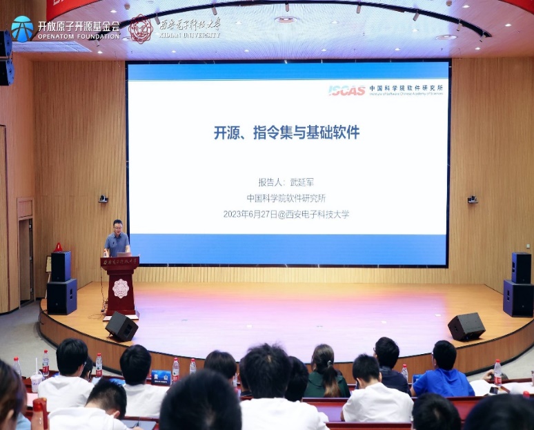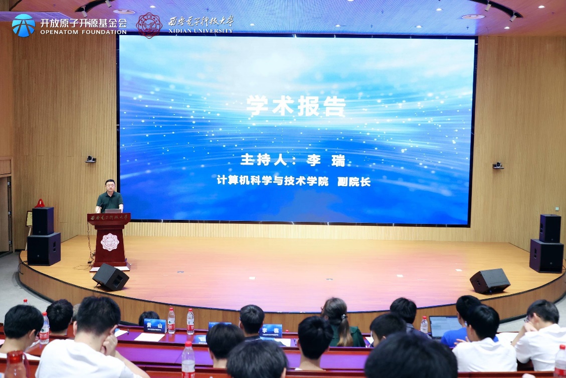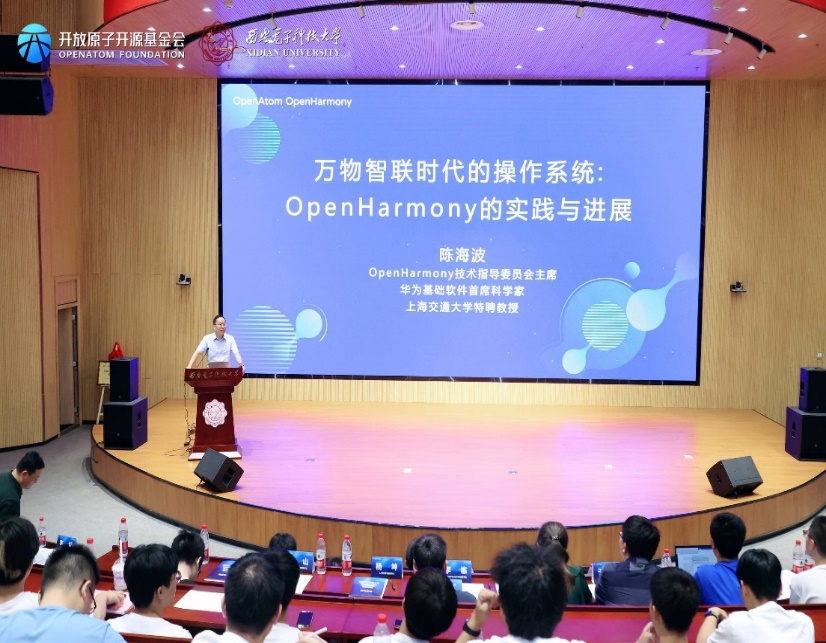 仪式后,陈海波和武延军两位老师代表OpenHarmony TSC专家向必威西汉姆联的师生们做了OpenHarmony相关主题的技术报告。第二阶段会议由必威西汉姆联副经理李瑞主持。