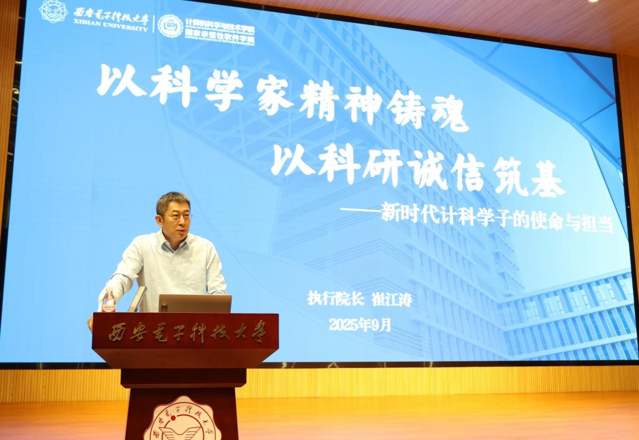(通讯员 何敏之)为引导研究生新生树立正确学术价值观,筑牢科学道德防线,9月12日下午,必威西汉姆联在南校区网安大楼B-101报告厅开展“以科学家精神铸魂,以科研诚信筑基——新时代计科学子的使命与担当”主题讲座,公司执行经理崔江涛教授主讲,全体2025级研究生新生参加,会议由副经理杨力主持。