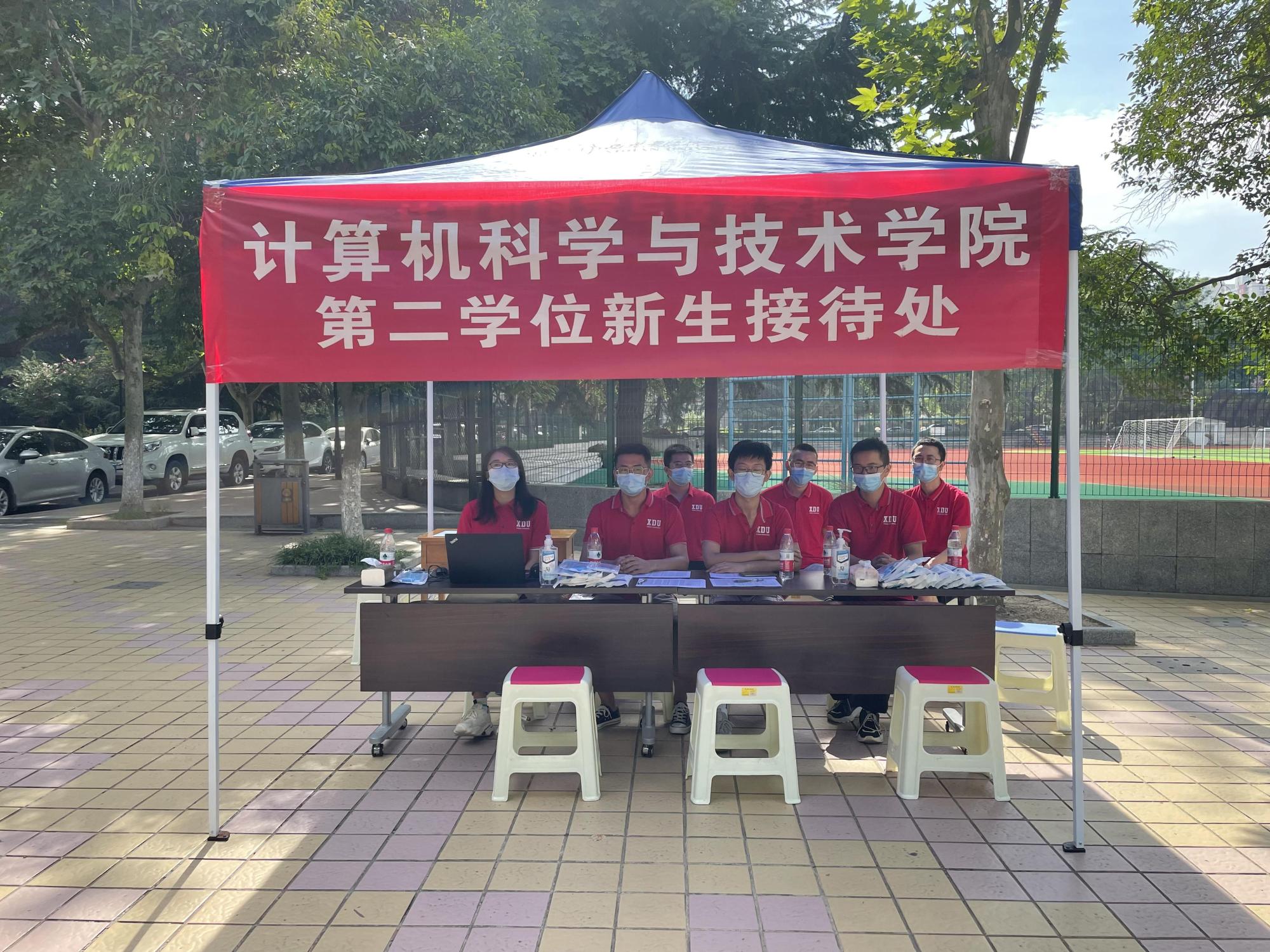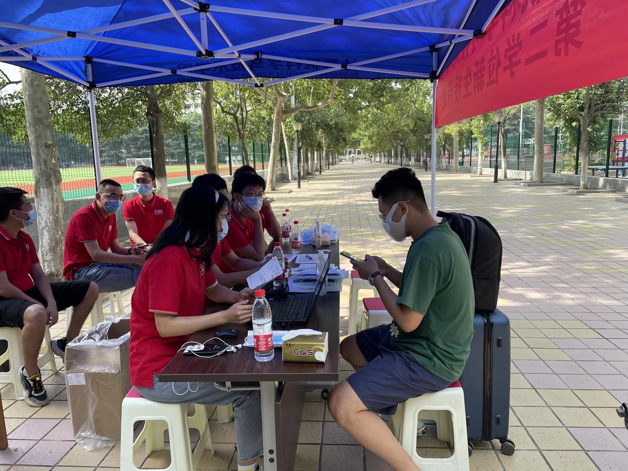 28日早上,辅导员老师及迎新志愿者们早早就开始了准备工作,在北校区主楼下设立第二学位新生报到接待点,搭设帐篷、摆放桌椅、安装设备、分配物资。根据公司防疫要求,迎新志愿者认真核验报到员工的健康码和相关证明,并为同学们发放校园一卡通及口罩等防疫物资,高效完成新生报到登记工作。