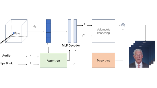 本专题的竞赛议程聚焦于AIGC(Artificial Intelligence Generated Content)中的数字人生成领域,从两个赛道进行综合评估,分别是单图像赛道(Single Image Setting)和视频赛道(Video Setting)。在单图像赛道中,团队的方法以3DMM 系数为媒介,通过特征提取、系数融合预测和渲染三个模块实现视频序列的生成。在视频赛道中,团队采用神经辐射场的基本框架,用辐射场分别建模生成头部和躯干部分,最后将头部与躯干融合形成最终视频。