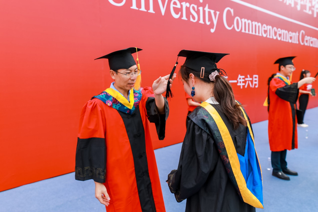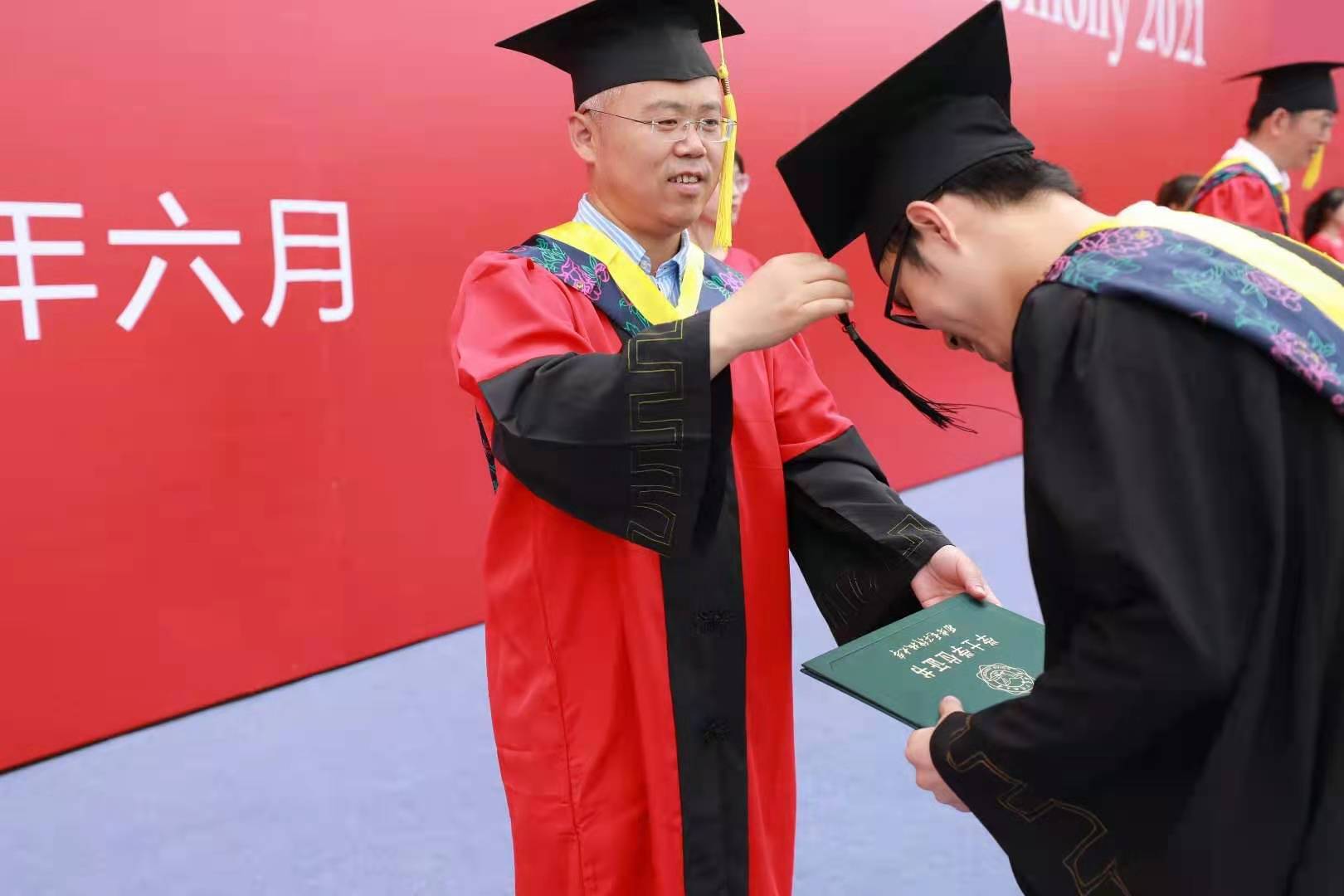 伴随着激扬、欢快的背景音乐,毕业生们排着整齐的队列,依次上台,授位嘉宾一一为同学们拨穗、授位。与会领导老师、全体毕业生和部分员工家长共同见证了这一激动人心的时刻。