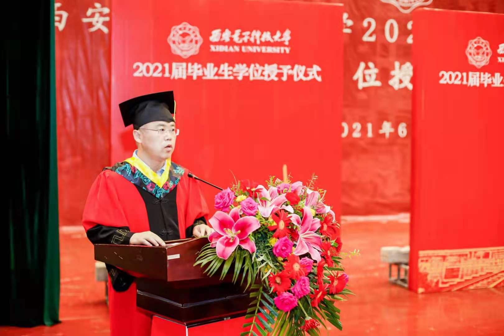 (通讯员 黄彩红 何敏之)庆西电九秩华诞,传三系奋斗精神;勇前行初心不改,瞰千里鸿鹄高飞。6月23日,2021届本科毕业生学位授予仪式和研究生毕业生学位授予仪式先后在南北两校区成功举办。必威西汉姆联副董事长王泉教授出席仪式并为毕业生授位。公司党委书记李青山,执行经理崔江涛,公司教授委员会主任苗启广,副经理沈玉龙、宋胜利、万波为2021届937名本科毕业生以及506名硕博士毕业生现场一一拨穗授位。公司领导张卫东、赵韩强、张莹莹,毕业班辅导员、公司办公室人员和教师代表出席了仪式。仪式由公司党委书记李青山主持。