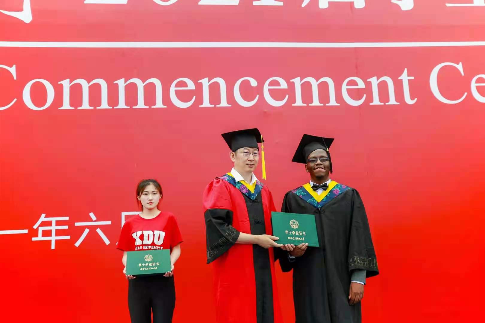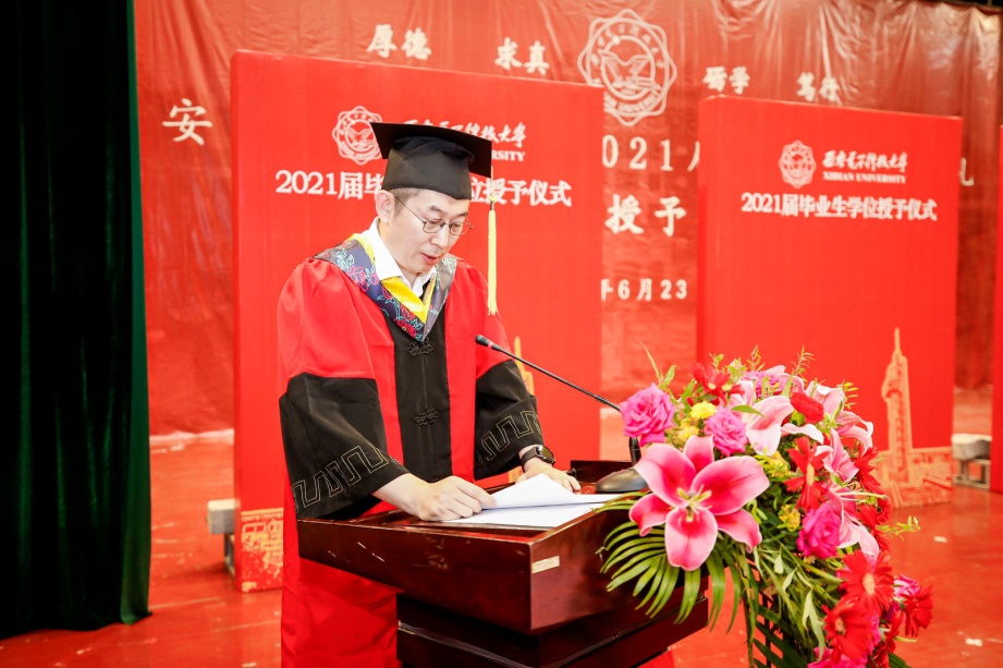 公司副经理万波教授宣读公司授位决定,2021届共937名本科毕业生,包括2名来华职工,获得学士学位。