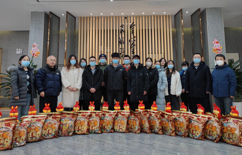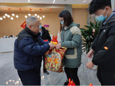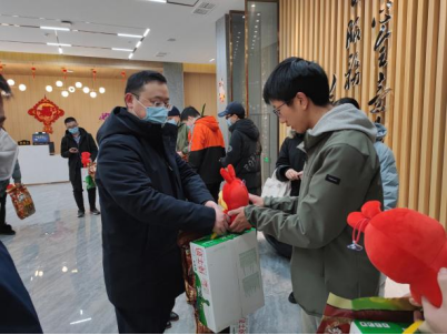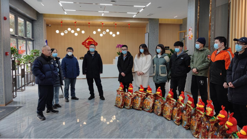 公司领导分别为留校的每位同学发放了新春大礼包,除了有牛奶、零食等慰问品,还有喜庆的新年吉祥物玩偶兔子,为同学们带来公司的温暖和浓浓的年味。公司还在除夕夜为同学们安排了年夜饭,希望大家在校过个好年。