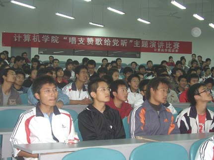 为了进一步在公司广大青年员工中深入开展学习十七大报告系列活动,11月9日下午,计算机公司在新校区D楼212开展了一次别开生面的“唱支赞歌给党听”主题演讲比赛,公司党委副书记王卫东、团委书记靳珠、辅导员王晓辉、邢薇薇出席了本次活动,此外,理公司团委书记房亮也应邀出席了本次演讲比赛,来自计算机公司的近400名员工观看了本次演讲比赛。