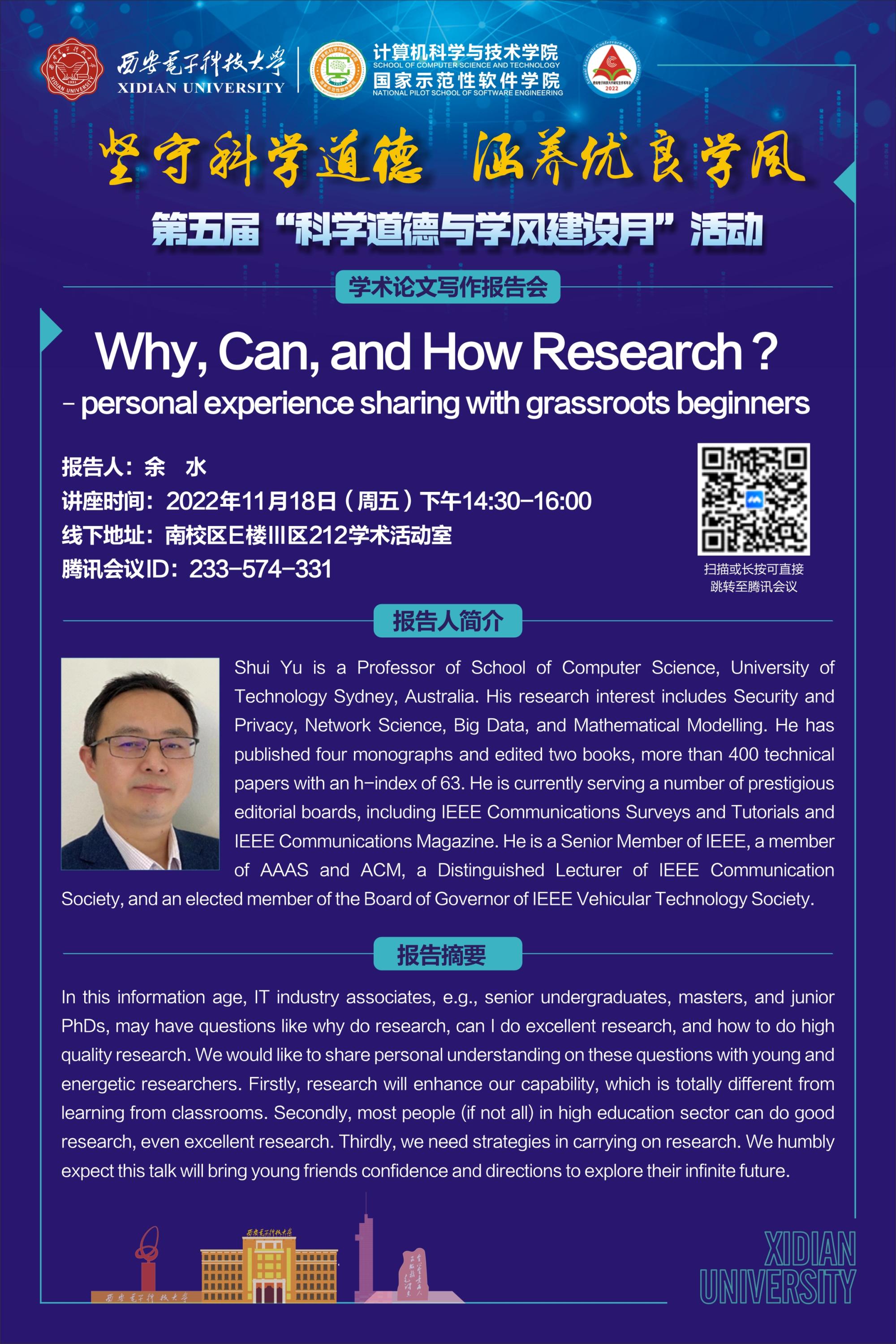 坚守科学道德,涵养优良学风|必威西汉姆联第五届科学道德与学风建设月活动之学术论文写作报告会预告