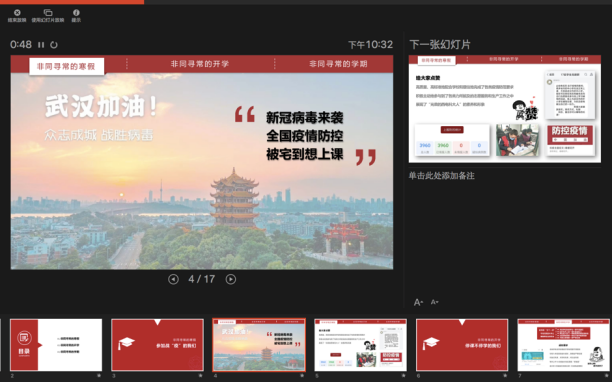 计算机科学与技术专业2017级本科生党奇伟表示:“虽然受疫情影响不能返校,但老师们利用在线教育平台开展授课,线上开学点名,让我们在家进入虚拟校园受教育。居家学习不添乱,就是为国做贡献。”