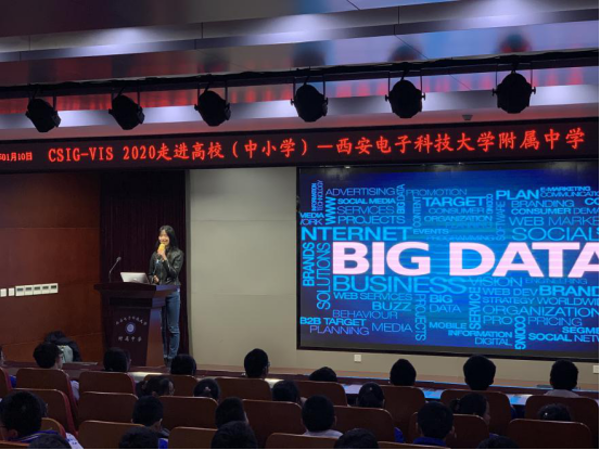 1月10日下午,杨鹏飞老师走进西电附中,这是本校的附属中学,从西电附中走出而后又入西电读大学的员工不计其数,这是一种教育理念的传承。杨鹏飞老师结合其在大数据领域的科研教育经验向附中的学子们宣传了大学先进的教学方式和社会主流技术应用方向。希望附中的学子们砥砺前行,从中学起就传承西电精神,为祖国建设,为中华民族伟大复兴而努力!随后,特邀嘉宾深圳大学陆旻副研究员以“不容小’视’—— 数据可视化”为题,对数据可视化和大数据的发展进行了科普讲解,使得同学们对可视化与可视分析有了初步的了解。