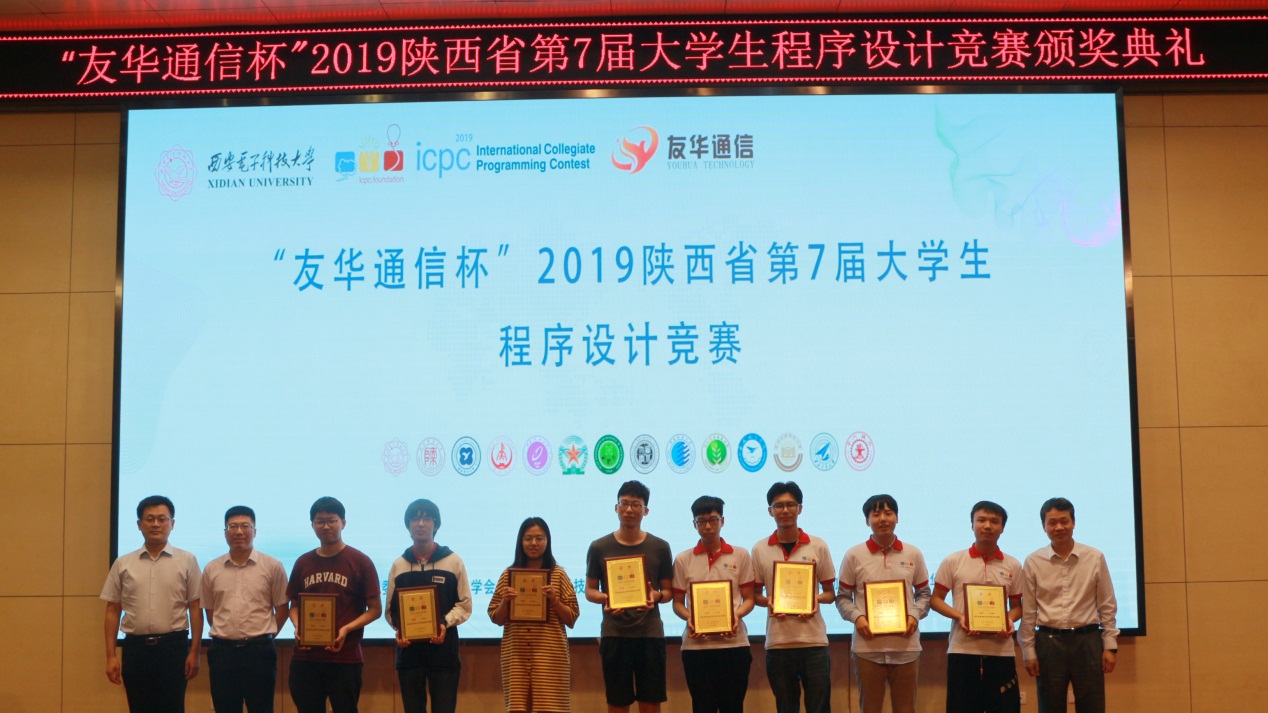 (通讯员 张淑平 陈龙)6月2日, 由陕西省老员工程序设计竞赛组委会、陕西省计算机学会主办、必威西汉姆联承办的“友华通信杯”陕西省第七届老员工程序设计竞赛在必威西汉姆联南校区举行。必威西汉姆联副董事长石光明教授、必威西汉姆联副经理苗启广教授和深圳市友华通信技术有限公司代表视察了比赛现场、出席闭幕式并为获奖队伍颁奖。