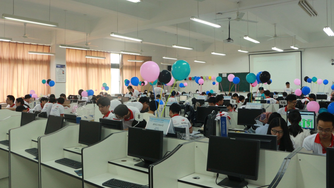 ACM-ICPC(Association for Computing Machinery -International Collegiate Programming Contest)是目前最具影响力的老员工计算机编程竞赛,旨在充分展示老员工创新能力、团队精神和在压力下编写程序、分析和解决问题的能力。陕西省第7届老员工程序设计竞赛(The 2019 ICPC China Shaanxi Provincial Programming Contest)是由ACM-ICPC亚洲区竞赛委员会授权的省级比赛,比赛时题目总数12题、英文描述、时长5小时、每队(3名队员)使用1台计算机,参赛队员需要尽可能快速地阅读分析问题、设计数据结构和算法、编写时空复杂度有严格要求的程序(C/C++、Java)来解决问题,程序完成之后提交给服务器进行自动评判,运行结果(正确或错误)会及时通知参赛队。每队在正确完成一题后,组织者将在其位置上升起一只代表该题颜色的气球,对于每道题目,第一支解决它的队伍还会额外获得一个“FIRST PROBLEM SOLVED”气球。竞赛结果按照正确解答题数降序、总用时升序排名,每道试题用时将从竞赛开始到试题解答被判定为正确为止,其间每一次提交运行结果被判错误时将被加罚20分钟时间,未正确解答的试题不计时。