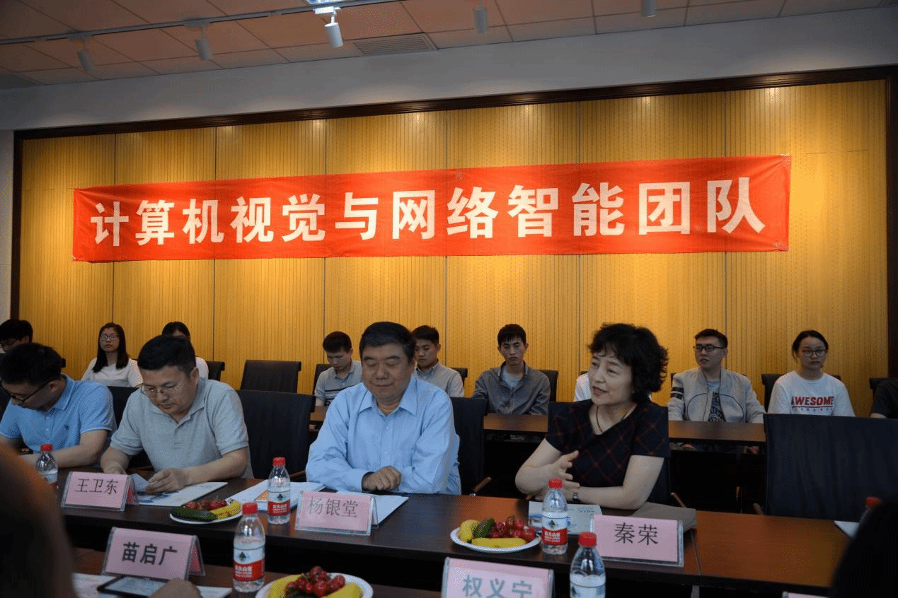 计算机公司副经理王卫东首先对杨书记和秦部长的到来表示感谢,对计算机视觉与网络智能团队表示祝贺。他指出,导学团队是学习和科研的根基,导师是团队的领路人,导师要继续保持“严谨、笃学、激情、创新”的精神,带领全体研究生努力前行,进一步拓展研究生各方面的综合能力。