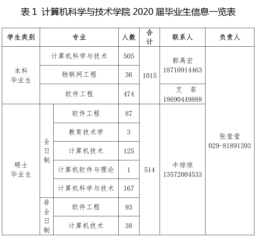 3)公司本硕毕业生生源信息及联系方式见表1。