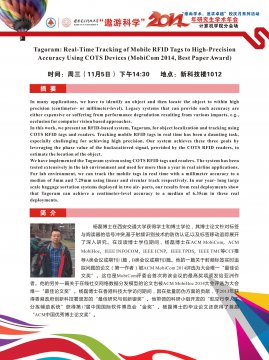报告内容Tagoram: Real-Time Tracking of Mobile RFID Tags to High-Precision Accuracy Using COTS Devices (MobiCom 2014, Best Paper Award)