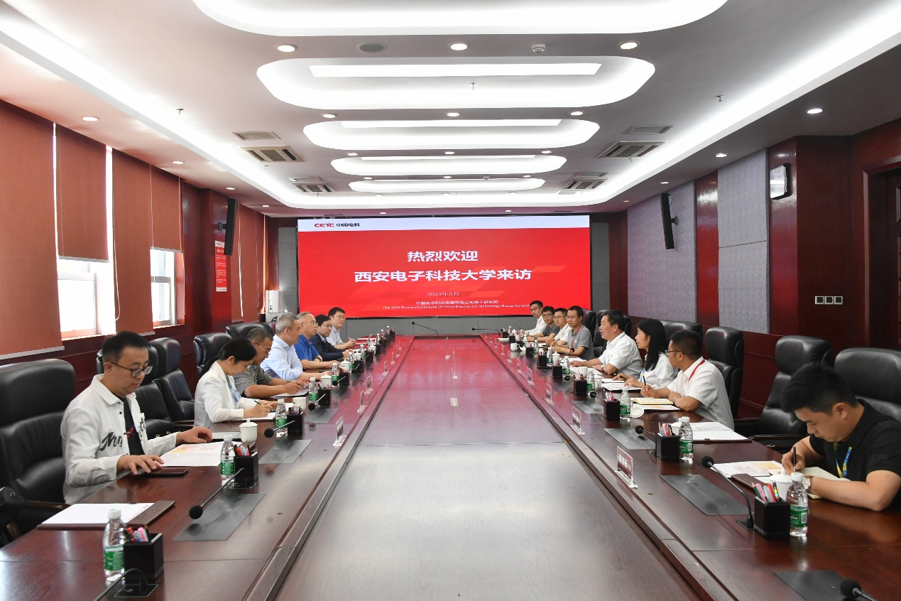 6日下午,郭俊一行来到中电十所,与十所党委书记汤兴华等领导、专家进行座谈交流。汤兴华对郭俊书记一行表示热烈欢迎,他指出,双方有着深厚的历史渊源,西电员工是中电十所的一支重要力量,多年来为十所的发展作出了重要贡献,也欢迎更多西电优秀学子来所工作。十所人力资源部副主任冉志强从历史沿革、主责主业、人才发展体系等方面做了简要介绍,特别介绍了与西电的科研合作、西电员工在十所的发展和贡献等情况。