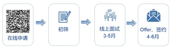 宣讲会+投简历后同步完成在线测评(Day1)→初面(Day2-3)→复试+签约(Day3-4)