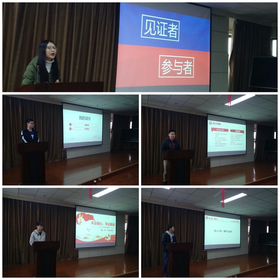 活动的第一项内容为党员代表分享在“不忘初心、牢记使命”主题教育中的心得体会。5名本科党员代表和6名研究生党员代表畅谈了自己的学习体会,以及作为本科生/研究生的初心和在支部中获得的成长。同学们畅所欲言,有同学表示自己作为青少年,是党带领国家走向富强的见证者,所以也希望自己是参与者,能够真正为国家和社会做出贡献,付出实际行动。也有同学分享了自己刚进入大学时的期待和迷茫,带着这份期待和成为一位有价值的人的目标积极加入了中国共产党,并且分享了自己成长过程中各种迷茫心理和调整方式,鼓励大家牢记使命,勇往向前。各位同学主要从思想觉悟、学习生活和发展目标三个方面出发,分享了自己对“初心”和“使命”的理解,一致表示应牢记自己的初心与使命,将目光放高放远,积极去思考如何通过提升“小我”,为社会和国家做出自己的贡献。