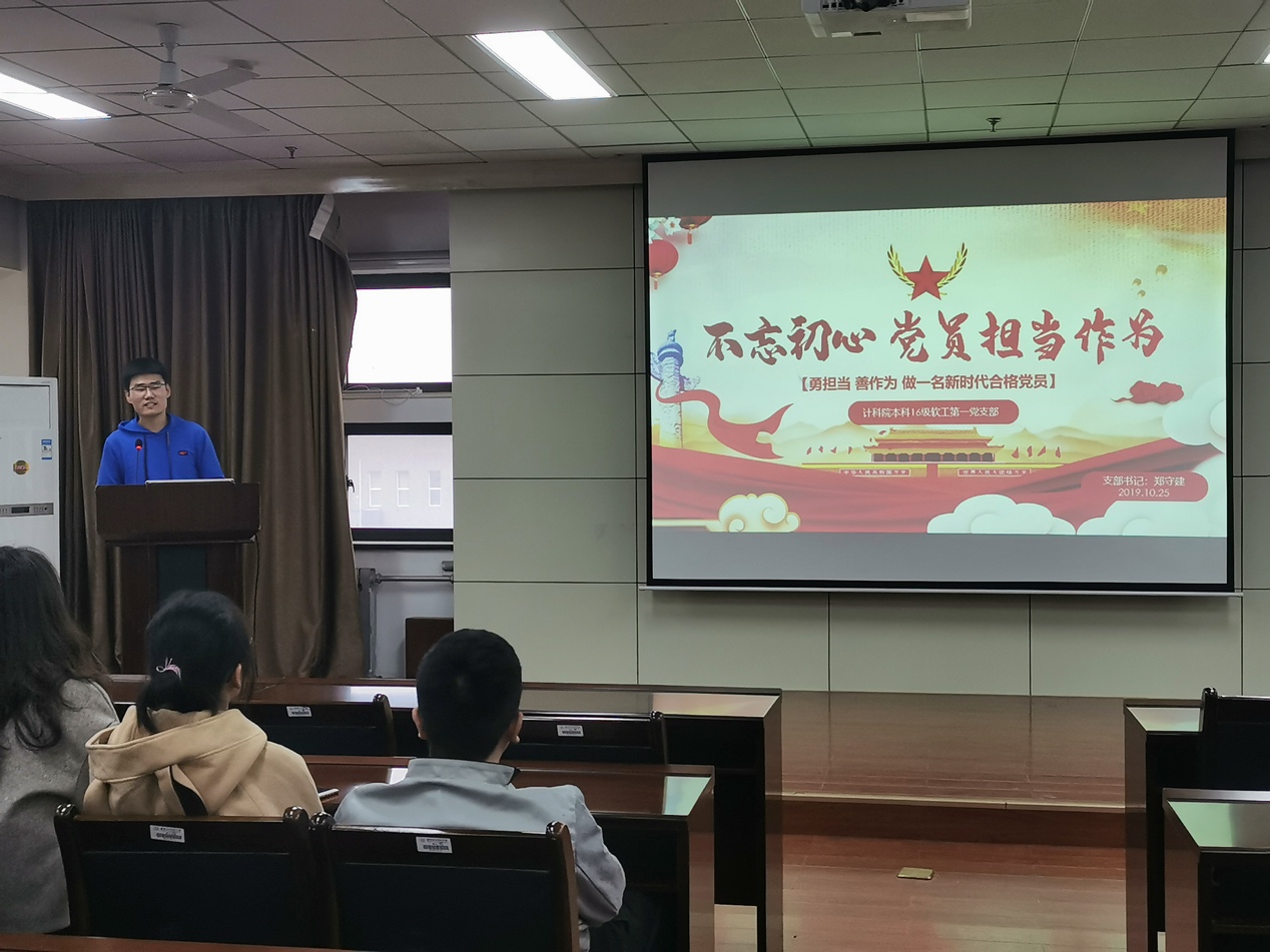 (通讯员 曹佳妮)习近平总书记在十九大报告中指出,要在全党开展 “不忘初心、牢记使命”主题教育活动,用党的创新理论武装头脑,推动全党更加自觉地为实现新时代党的历史使命不懈奋斗。中共中央决定从6月开始,在全党自上而下分两批开展“不忘初心、牢记使命”主题教育活动。10月25日下午五点,必威西汉姆联本科2016级软件工程第一党支部在G楼516开展“不忘初心、牢记使命”主题教育党课活动。活动由支部书记郑守建主持。