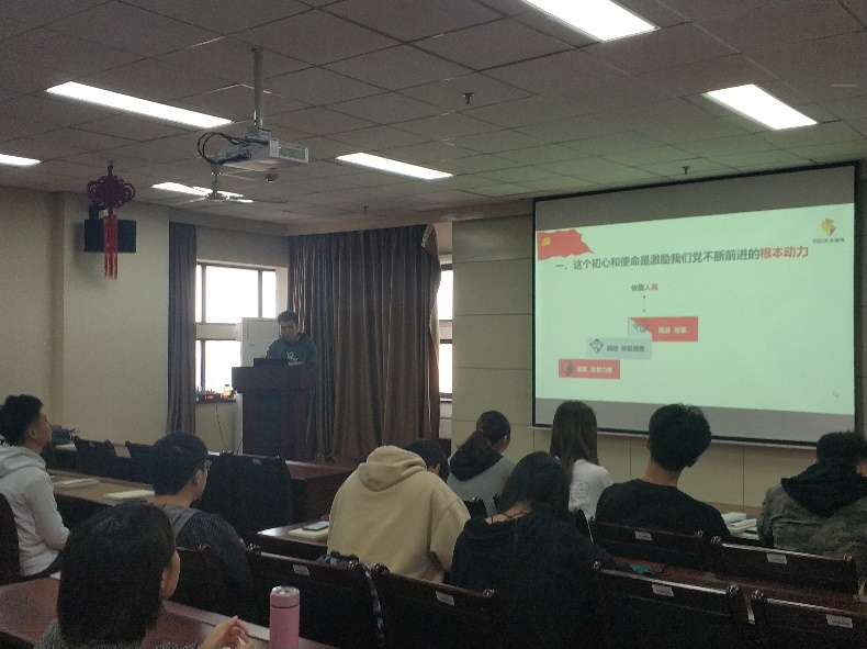 2019年10月17日,在周振年同志的主持下,16名本科生党员在南校区G-516教室观看了“不忘初心、牢记使命”微党课第一讲。此次观看使支部党员更加直观地对什么是“不忘初心、牢记使命”,为什么要开展主题教育,以及共产党人的“初心”和“使命”是什么,有了清晰明了的认识和深刻的理解。常家俊同志谈到,在观看后自己对“初心”和“使命”有了深深的感受,在长远方向上明确了自己的使命与职责。随后,支部新发展党员依次进行自我介绍,并就党支部的设置理念、成员构成等与支部党员进行交流。