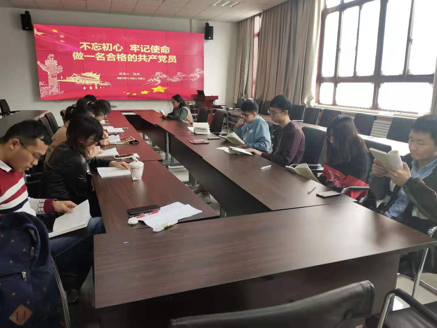 2019年10月18日在北校区主楼二区319会议室,12名研究生党员认真学习了《习近平关于“不忘初心、牢记使命”论述摘编》一书。活动伊始,张琛同志谈到了开展“不忘初心、牢记使命”主题教育的背景。2017年10月召开了党的十九大,其中大会的主题就是“不忘初心、牢记使命”,为了更好地贯彻落实主题教育,首先得知道什么是“初心”,什么是“使命”,这是每个共产党人都应该牢记于心的。从1921年中国共产党诞生到1949年新中国成立,再到“两弹一星”、科技兴国、改革开放,我们国家发生的变化是巨大的,翻天覆地的。我们有民族英雄,有立党为公,有兢兢业业地全心全意为人民服务的先锋模范人物,也有为国家富强、民族复兴做出巨大贡献的先进知识分子,他们都做到了坚守初心和使命。对于当代的年轻一代党员,我们还要“四 有四讲”,做合格党员,向优秀党员看齐。