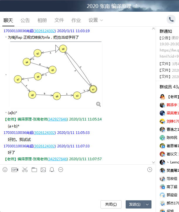 尽管“编译原理”课程理解消化较难,但是上课整体氛围活跃,员工反响良好。在直播的同时互动,以讲述基本知识点为主,避免影响员工正常学习;在课后答疑时,师生就重点难点进行深入的讨论。