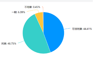 通过上图可以看出,60%的员工认为,疫情结束之后,可将20%以上的课程内容采用线上教学模式,这为以后的教学改革提供了思路。
