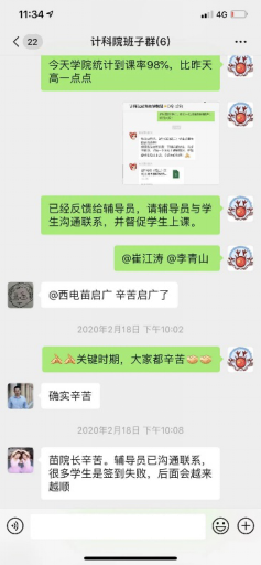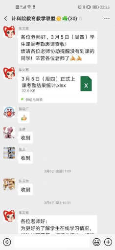 在2月13日的教学工作部署专题会中,执行经理崔江涛就曾谈到“要保证所有理论课程100%成功开课,本学期教师100%顺利授课,所有选课员工100%顺利上课”。后期他通过问卷调查、视频会议以及微信群互动等多个方式对数字媒体技术254名选课员工、学业指导19名员工以及计算机输入输出省部级重点实验室本硕博师党支部10名本科生党员代表进行全方位调研,包括线上教学平台、课堂互动、授课效果、线上线下对比等多个方面,并给出建议。例如,针对现在学习缺乏约束的问题提出要加强心理动态了解,帮助员工调整被动学习心态,教师加强互动,引导员工注意力。